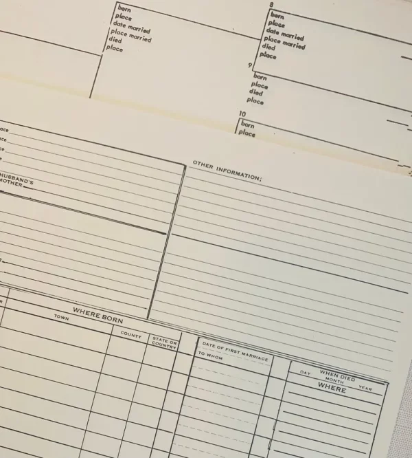 I came across reams of copies of these old genealogy research forms, and since I’ve been deep into research on Ancestry.com, I thought I’d get them to share so we can all enjoy them. You can put these in a notebook or journal and head to the library or the nearest national archives branch and stay for days. There’s one 45 minutes from here and I’m on pins and needles to go!