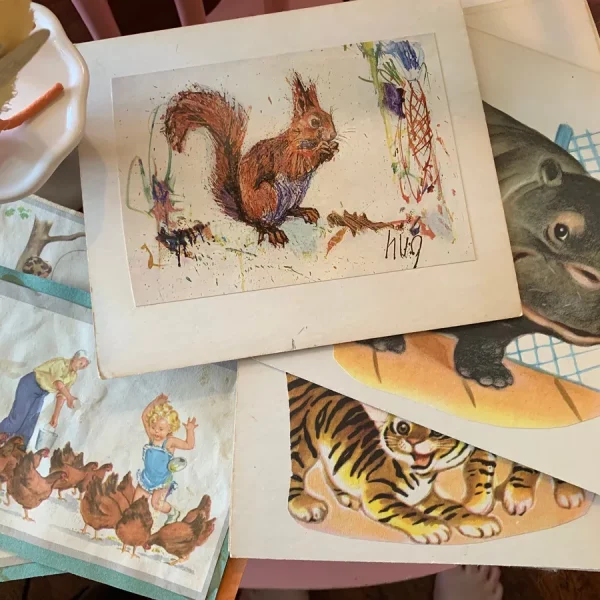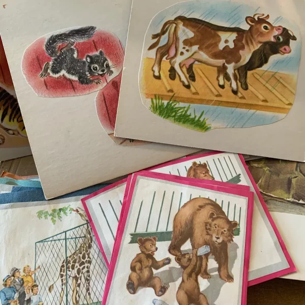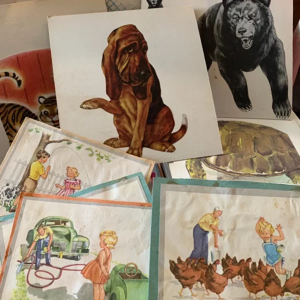 Found in a Dallas estate sale! These flash cards were handmade by the angel of a teacher for her group of students to study animals. They are made from construction paper and images she cut out. So sweet!