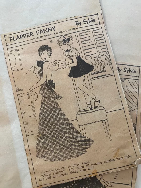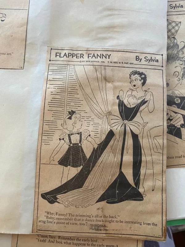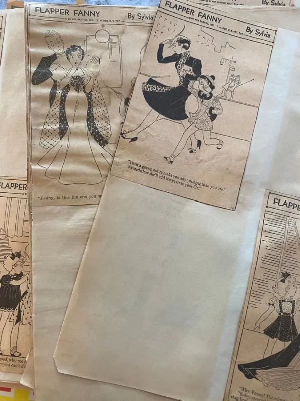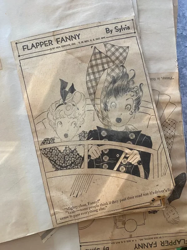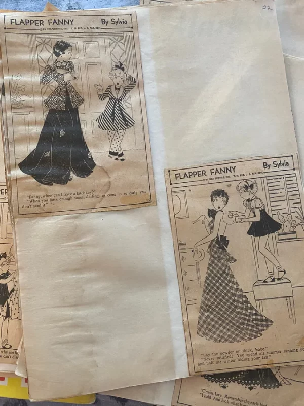Antique Vintage Old Scrapbook Pages Paper of Flapper Fanny Comics Cartoon News Clippings Ethel Hayes Sylvia Sneidman 1920s 1930s Ephemera