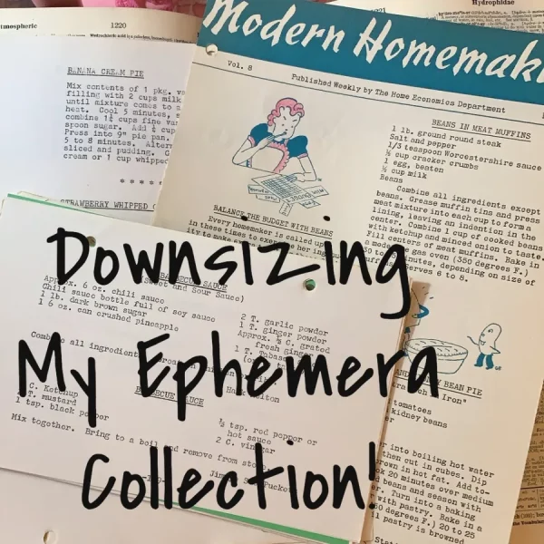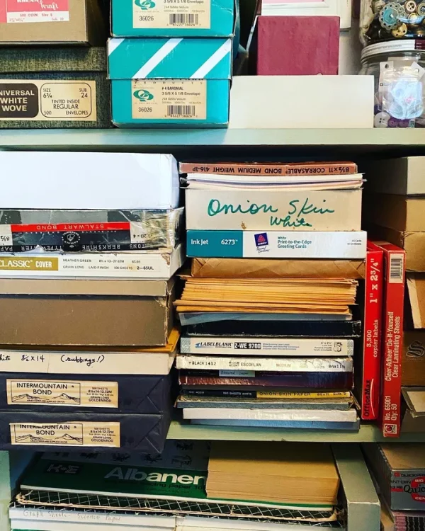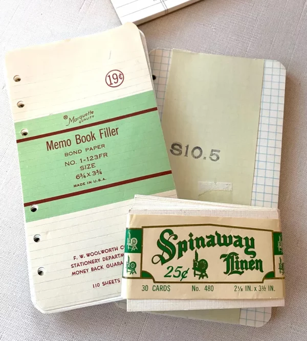 These boxes are stuffed with things such as books, greeting cards, paper, office, game pieces, school, ephemera, and just about any paper craft, school, sewing, and craft item you can imagine in my vintage piles.