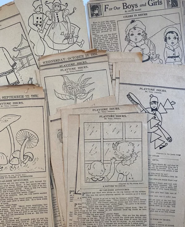 I’ll send you a random set of 3 of these articles, and they measure about 9” tall and about 4-5 inches wide. Some are about half that size. So sweet and perfect for nostalgic activities!