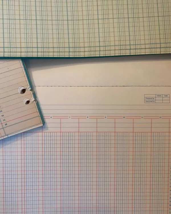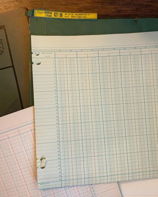 Vintage Boorum and Pease Ledger Notebook Refill Sheets Set of 12 Blank Sheets in white and green with multi lines and sizes