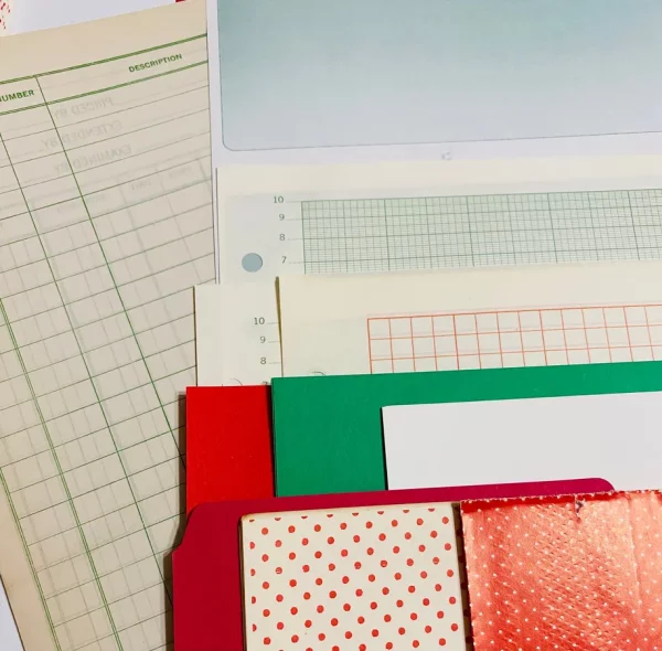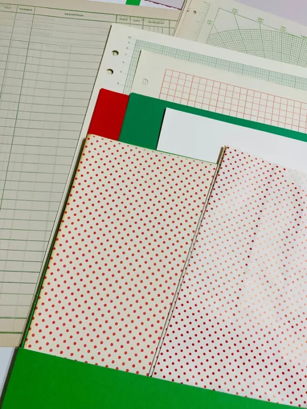 Vintage Christmas Red and Green Pages Paper Folder Junk Journals Crafts Planners Diary Writing Mail Polka Dot Grid K&E Bag Ephemera Wrap Tag