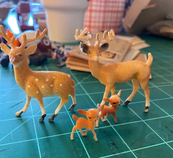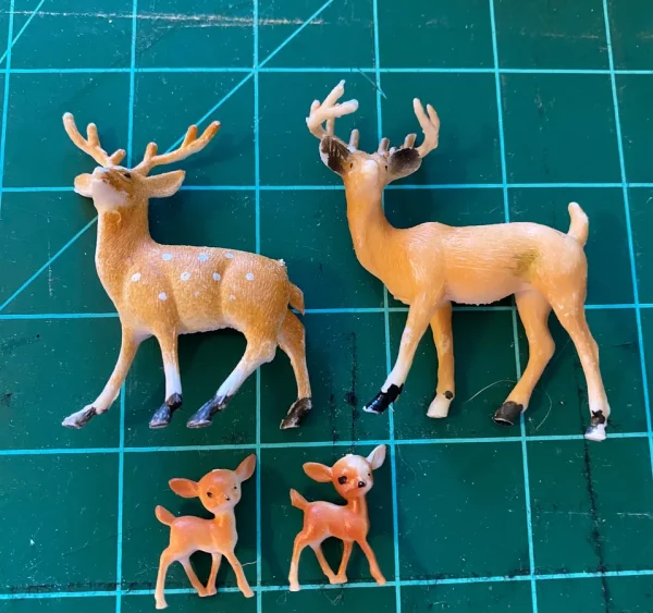 Vintage Tiny Toy Deer Plastic Buck Doe Fawns Woodland Forest Animals Set Nursery Crafts Shower